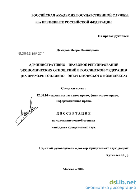 прежде всего, служит системный, комплексный подход к анализу государственного регулирования экономических отношений в Российской Федерации, в соответствии с которым диссертант рассматривает государственное регулирование экономических отношений в топливно-энергетическом комплексе, как сложное правовое и управленческое явление, гарантирующее практическую реализуемость законов в управленческих актах. Диссертант использовал различные методы изучения и анализа государственного регулирования экономических отношений в Российской Федерации: конкретно-исторический, сравнительно-правовой, системный, статистический, интегральный, формально-юридический, ситуационный, теоретико-прогностический, а также теоретические положения в сфере административного права и отраслевых юридических наук.