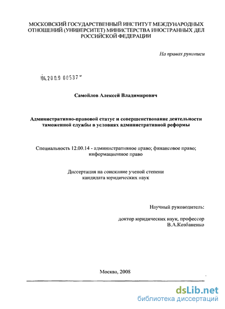 Обобщение научных и практических подходов к проблемам организации таможенной службы РФ на основных этапах административной реформы в Российской Федерации, в части касающейся правового регулирования таможенной службы РФ.