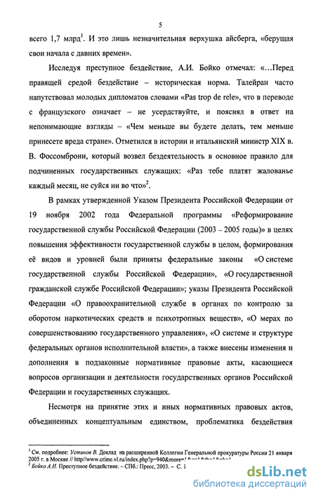 См. подробнее: Устинов В. Доклад на расширенной Коллегии Генеральной прокуратуры России 21 января 2005 г. в Москве // http//2 Бойко А.И. Преступное бездействие. - СПб.: Пресс, 2003. - С. 14.