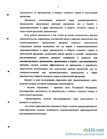 Цель работы заключается в том, чтобы на основе комплексного анализа законодательства, современных достижений науки и практики применения мер административного принуждения раскрыть сущность деятельности сотрудников органов внутренних дел по борьбе с административными правонарушениями в сфере производства и оборота этилового спирта и алкогольной продукции; осуществить анализ причин и условий совершения рассматриваемых деликтов; раскрыть содержание и сущность мер административного принуждения, применяемых в борьбе с рассматриваемым явлением; изучить условия эффективности их применения и выработать практические рекомендации для сотрудников органов внутренних дел по совершенствованию мер административного принуждения в сфере производства и оборота этилового спирта и алкогольной продукции.