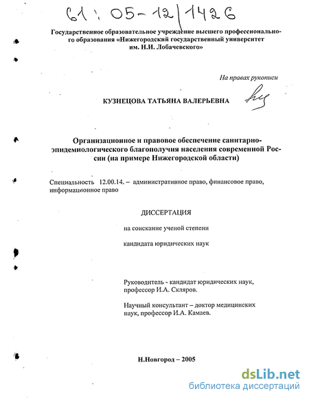 ставленная диссертация является самостоятельным комплексным исследованием актуальных проблем организационно-правовой деятельности органов, обеспечивающих санитарно-эпидемиологическое благополучие населения и права потребителей России.