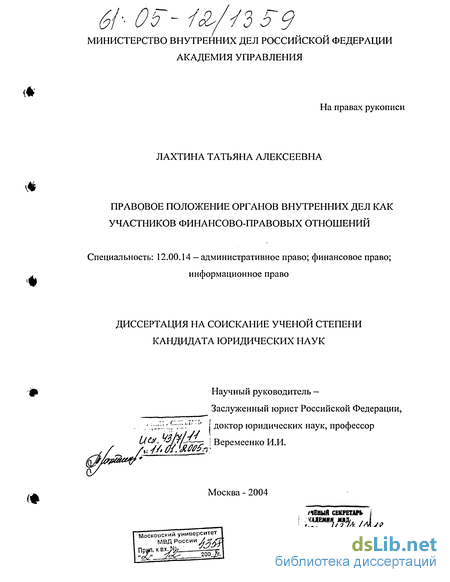 жданский кодекс Российской Федерации, и др. В диссертационном исследовании использовались положения, содержащиеся в ведомственных нормативных актах МВД России.