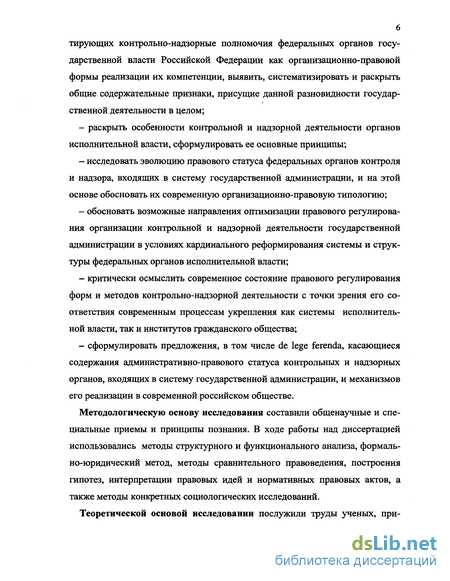 Цель и задачи исследования. Целью диссертации является комплексное исследование современной практики организации контрольной и надзорной деятельности федеральных органов исполнительной власти как государственно-правового института для обоснования конкретных предложений по совершенствованию правового регулирования в этой сфере.