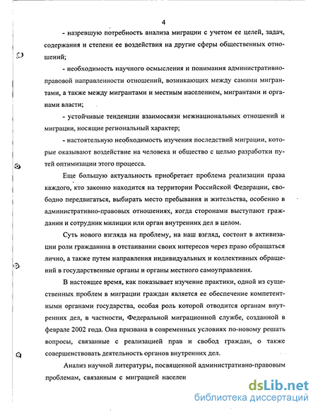 Анализ научной литературы, посвященной административно-правовым проблемам, связанным с миграцией населения, свидетельствует о том, что