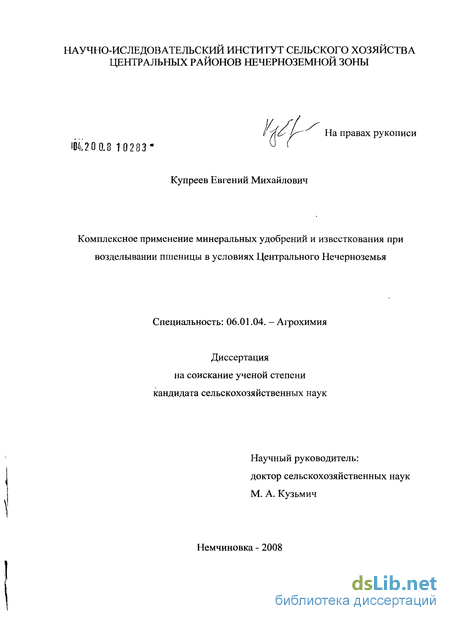 Минеральные удобрения в виде Naa, Рсд, Кх, а также известняковой муки вносили под предпосевную обработку почвы вручную, согласно схемам опыта. Фоном вносили РбоКбо, а по вариантам опыта аммиачную селитру в дозах 60, 90 и 120 кг д.в./га азота.