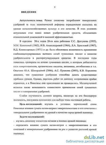 Научная новизна. Впервые на южных черноземах Поволжья изучено влияние сроков и способов применения гуматов, а также их сочетаний с минеральными удобрениями на рост, развитие, урожай и качество зерна яровой пшеницы. Выявлено равноценное влияние намачивания семян и обработки вегетирующих растений растворами солей гуминовых кислот на продуктивность яровой пшеницы. Определены размеры выноса и потребления на единицу урожая азота, фосфора и калия яровой пшеницей при использовании гуминовых удобрений. Установлено положительное влияние гумата калия-натрия с микроэлементами на выход растительного белка с единицы площади.