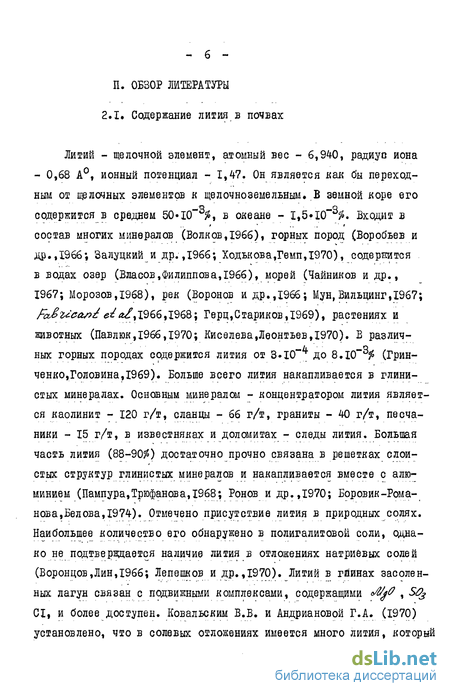 4.1. Содержание лития в почве, минеральных удобрениях и растениях 40