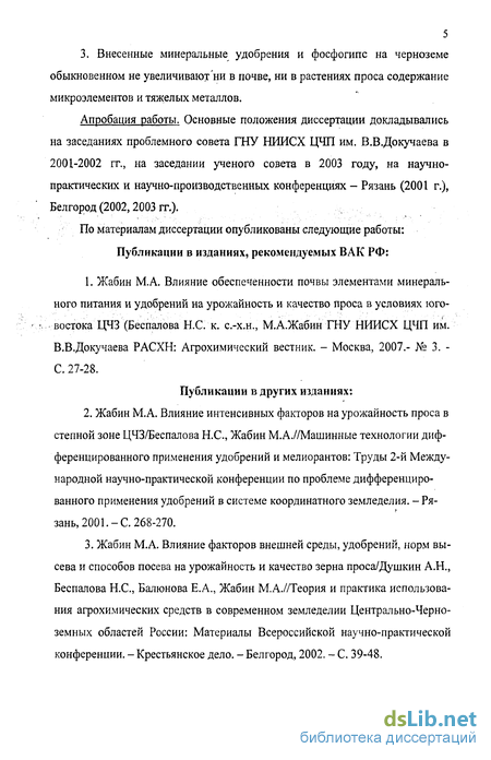 Жабин М.А. Влияние факторов внешней среды, удобрений, норм высева и способов посева на урожайность и качество зерна проса/Душкин А.Н., Беспалова Н.С, Балюнова Е.А., Жабин М.А./ЛГеория и практика использования агрохимических средств в современном земледелии Центрально-Черноземных областей России: Материалы Всероссийской научно-практической конференции. - Крестьянское дело. - Белгород, 2002. - С. 39-48.