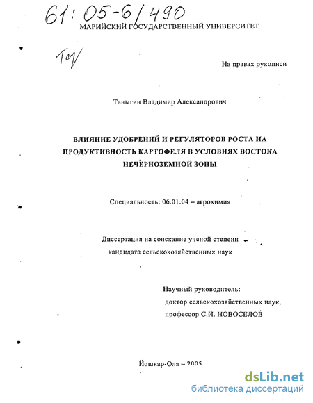 Картофель относится к числу важнейших сельскохозяйственных культур. Получение стабильных урожаев картофеля хорошего качества является важной народнохозяйственной задачей. Продуктивность картофеля определяется погодными условиями вегетационного периода, биологическими особенностями сорта, гранулометрическим составом почвы, содержанием в ней доступных питательных веществ, дозами и способами внесения минеральных и органических удобрений, технологией возделывания и другими факторами (Брагин, 1998; Панников, 1977 и др.) На дерново-подзолистых почвах важная роль в формировании урожая картофеля принадлежит удобрениям. Это связано с низкой обеспеченностью данного типа почв питательными веществами и высокой потребностью картофеля в элементах питания. Сложные условия современного периода вызывают необходимость разработок новых технологий, адаптированных к современным условиям землепользования. В связи с резким снижением за последние годы применением удобрений встала проблема поиска путей максимального использования биологического фактора. Одним из них является использование регуляторов роста растений. Они позволяют регулировать рост и развитие растений, полнее реализовывать их потенциальные возможности, эффективнее использовать питательные вещества почвы, повышать устойчивость сельскохозяйственных растений к неблагоприятным факторам внешней среды и болезням, увеличивать их продуктивность и улучшать качество продукции за счет процессов, происходящих в