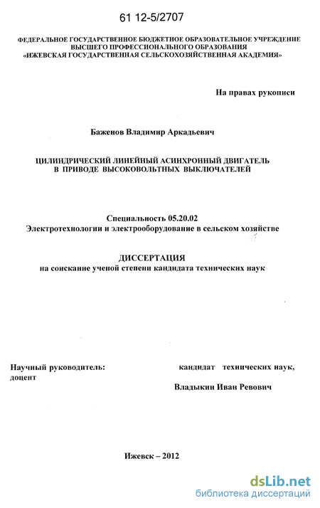 Объектом исследования является: цилиндрический линейный асинхронный электродвигатель (ЦЛАД) приводных устройств выключателей сельских распределительных сетей 6…35 кВ.