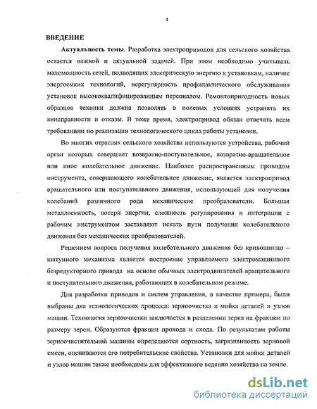 Публикации. По теме диссертации опубликовано 13 работ: 7 статей 5 патента РФ, и 1 рекпамно-техническом описании. На защиту выносятся следующие положения: разработка новых устройств сельскохозяйственного назначения с асинхронным приводом колебательного перемещения; обоснование возможности использования асинхронного однофазного двигателя колебательного перемещения и трехфазного асинхронного двигателя с преобразователем частоты в приводе зерноочистительной машины и установки для мойки деталей и узлом машин; математическое моделирование технологий с их подробным описанием, позволяющие учитывать удары в кинематике и электромагнитные переходные процессы, подтверждающие работоспособность механизмов; поиск косвенного показателя эффективности зерноочистки посредствам метода планирования эксперимента и построение поверхности откликов; - синтез системы управления для зерноочистительной машины. Структура и объем работы. Диссертация состоит из введения, шести глав, общих выводов, списка литературы.