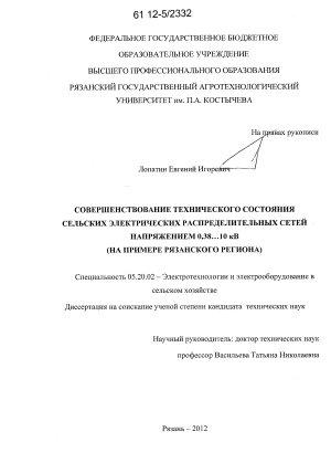 Актуальность работы. Система электроснабжения сельскохозяйственных потребителей напряжением 0,38... 10 кВ характеризуется низкими показателями надежности и значительным недоотпуском электроэнергии присоединенным потребителям. Продолжительность перерывов в электроснабжении по Рязанской области составляет 90 - 130 часов в год. Это обусловлено высоким износом оборудования трансформаторных подстанций 10/0,4 кВ, значительной протяженностью воздушных линий электропередачи напряжением 0,38...10 кВ, выполненных неизолированными проводами, эксплуатацией несовершенных коммутационных аппаратов, радиальным, в основном, принципом построения электрических схем.