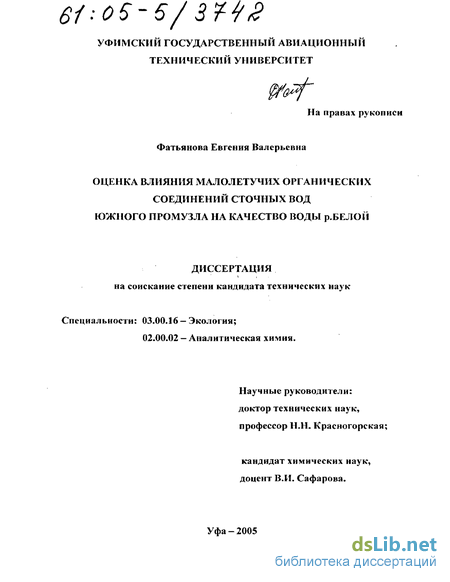 В связи с этим актуальной задачей является идентификация малолетучих компонентов в сточных водах южного промузла, выявление наиболее опасных из них и оценка их влияния на качество воды р.Белой.