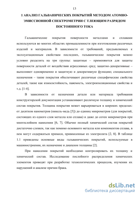 1 Анализ гальванических покрытий методом атомно эмиссионной спектрометрии с тлеющим разрядом постоянного тока 13