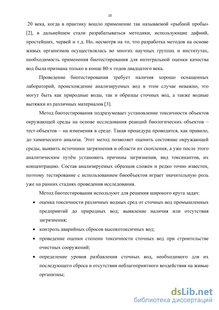 Количество реально применяемых на практике методик биотестирования довольно велико и зависит от конкретной поставленной задачи, но в этой работе будут рассматриваться несколько методик, которые широко используются в настоящее время для определения интегральной токсичности воды и подробно описываются в литературе.