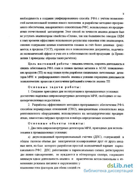 Цель настоящей работы -повыситьточность,сокраїитьджгельностьи снизить себестоимость РФА стали и сплавов цветных металлов в АСАК технологических продуктов (ТГГ) по ходу плавки путём разработки специальных светосильных детекторов МРИ и унифицированного способа анализа е условиях сокращения длительности технологических процессов и ужесточения требований к точности анализа ТП
