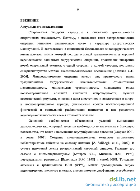Современная хирургия стремится к снижению травматичности оперативных вмешательств. Поэтому, в последние годы лапароскопические операции занимают значительное место в структуре хирургических манипуляций. В соответствии с концепцией безопасности эндохирургического вмешательства, смысл которой состоит в малой травматичное™ и хорошей переносимости пациентом хирургической операции, происходит внедрение новой оперативной техники, с одной стороны, с другой стороны, постоянно совершенствуются методы анестезиологического обеспечения [Качалов С.Н. 2006]. Лапароскопические операции имеют ряд преимуществ перед традиционными хирургическими вмешательствами: относительная малоинвазивность, минимальная травматичность, уменьшение риска послеоперационной спаечной кишечной непроходимости, лучший косметический результат, снижение дозы анестетиков и анальгетиков в интра-и послеоперационном периоде, уменьшение сроков послеоперационной физической и социальной реабилитации пациентов и как результата вышеперечисленного снижается стоимость лечения.