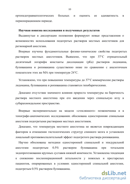 Основным итогом этого раздела работы является выявление факта укорочения времени начала сенсорного блока при использовании подогретого раствора местного анестетика по сравнению с анестетиком комнатной температуры. На основе проведенных исследований (см. главу 3) мы полагаем, что ускорение начала действия связано с изменением физико-химических свойств подогретых растворов местных анестетиков — рН и рКа. Увеличение рН и снижение рКа способствует росту неионизированной фракции местного анестетика и, соответственно, увеличению фракции препарата, активно проникающей через фосфолипидную мембрану нервного волокна. Указанные особенности обусловливают более быстрое начало сенсорной блокады при нейроаксиальной анестезии.