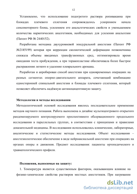 6.1. Влияние подогретых растворов местных анестетиков на эффективность