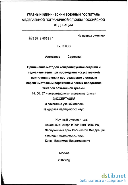 Статистическую обработку результатов исследования проводили методом вариационной статистики. Для каждого показателя рассчитывали среднеарифметическую М. Среднее квадратичное отклонение определяли по формуле: п -1 Зная величину среднего квадратичного отклонения и число вариант в ряду (п), вычисляли стандартную ошибку m средней арифметической: m=-j-vn Для определения статистической значимости разницы между среднеарифметическими при сравнении показателей вычисляли значение параметра Стьюдента t по формуле: t= г 122 Jm, +nty Оценку различий средних величин производили по таблице Стьюдента. Различия считали достоверными при р 0,05 [57]. ГЛАВА 3. РЕЗУЛЬТАТЫ СОБСТВЕННЫХ ИССЛЕДОВАНИЙ. Проблема выбора метода защиты психоэмоциональной сферы больного, длительное время находящегося в условиях ИВЛ, чрезвычайно актуальна. Дополнительный стресс, обусловленный невозможностью речевого контакта, боязнью отключения или поломки аппарата, без реальной возможности помочь самому себе, может привести к срыву и без того весьма напряженных механизмов поддержания гомеостаза у данной категории пациентов (Гологорский В.А., 1998). Очень неприятны такие процедуры, как туалет дыхательных путей, бронхоскопия, дренирование желудочно-кишечного тракта, а перевязки и другие манипуляции могут сопровождаться болью, наконец, сама ИВЛ - травмирующий фактор. Эта проблема становится еще более серьезной у пострадавших с тяжелой сочетанной травмой, перенесших катастрофу или боевую травму (Кичин В.В., с соавт.,2000).