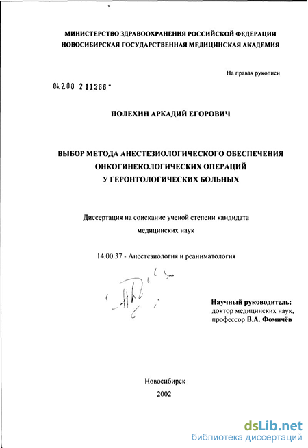 Актуальность темы. Современные достижения анестезиологии, базирующиеся на создании новых технологий и средств для реализации общей и регионарной анестезии, позволили существенно расширить хирургические возможности при выполнения сложных и травматичных операций у больных с тяжелыми нарушениями жизненно-важных функций, в том числе у лиц пожилого и старческого возраста с онкогинекологической патологией (Боровских Н.А., 1993; Рагозин А.В., 1997; Караваев Ю.Н., 1999; Гурьянов В.А., 2000; Карвало X., 1993; Guedj Р, Eldor J, Gozal Y., 1992; Nagashima N.. Fukutome Т., 1996).