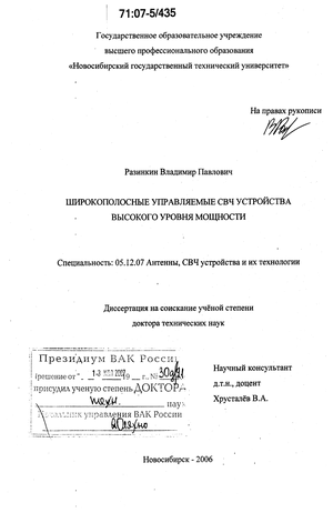 В данной работе обобщены научно-технические и патентные исследования, выполненные автором на протяжении ряда лет в Новосибирском государственном техническом университете по проблеме создания широкополосных управляемых СВЧ >стройств высокого уровня мощности.