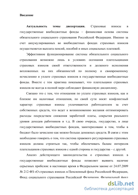 Актуальность темы диссертации. Страховые взносы в
