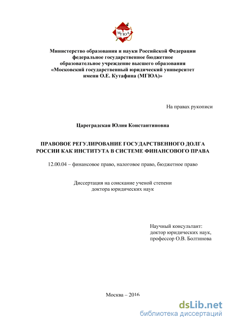 Глава 3. Современное финансово-правовое регулирование государственного долга Российской Федерации 190