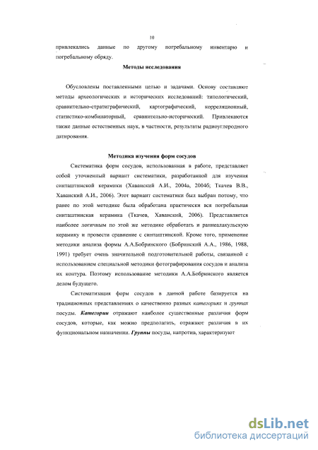 К синташтинской керамике исследователи обращаются достаточно часто, но известно не так много работ, в которых она обработана по единой методике, показано развитие форм и орнамента сосудов, намечен генезис и дальнейшее развитие синташтинских керамических традиций (Кузнецов, Мочалов, 2001; Ткачев, Хаванский, 2006). В большинстве работ, затрагивающих проблемы изучения данной культуры, исследователи обращают внимание на отдельные черты и признаки керамики, оформился вывод о многокомпонентности синташтинского керамического комплекса. Тем не менее, синташтинская проблема продолжает оставаться глубоко дискуссионной. Еще не сформировалось общепринятого представления о том, в каком хронологическом и культурном отношениях находились между собой синташтинские и раннеалакульские группы населения. Одной из причин этого является характер подходов исследователей к изучению керамики как исторического источника. Данное исследование предполагает изучение синташтинской и раннеалакульской керамики как исторического источника с позиций историко-культурного подхода, который уже продемонстрировал свою научную эффективность.