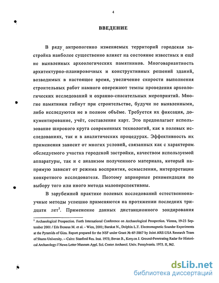 (ДДЗ), с использованием приборов глобального спутникового позиционирования (GPS) и в сочетании с геофизическими методами (так называемые «комплексные проекты»), позволяет изучать археологические памятники неразрушающими методами в условиях промышленных территорий и городских строений2. Следствием таких комплексных проектов, объединяющих усилия специалистов разных направлений, требующих крупного финансирования и долговременного исследования, является детальная реконструкция исторических процессов, связанных с конкретным археологическим памятником.