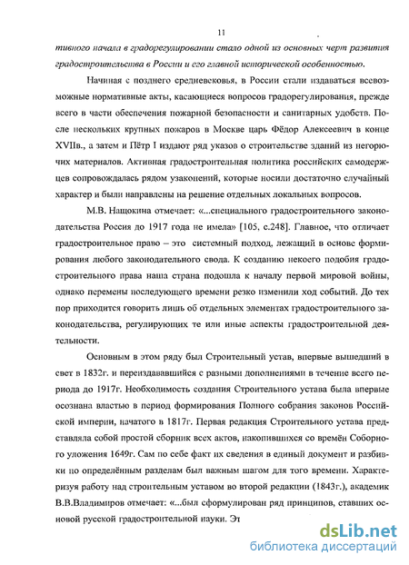 1.1.1. Исторические аспекты развития градостроительного права в России 10