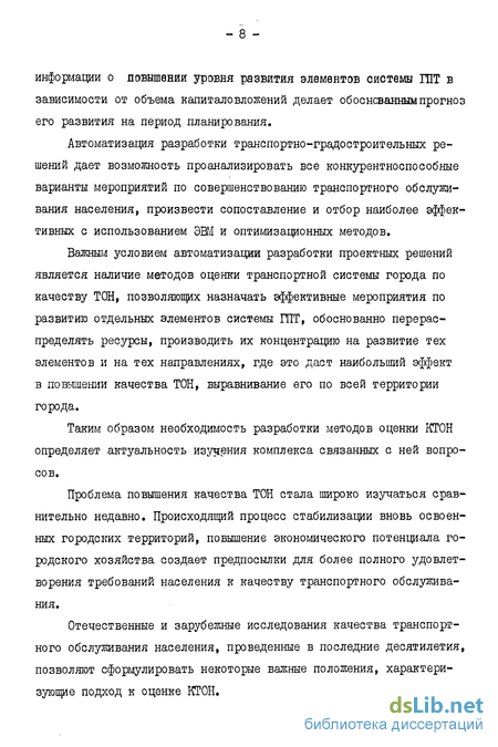 Повышение качества пассажироперевозок, необходимость которого определяется в постановлениях партии и правительства L3J, требует совершенствования всего механизма планирования и управления ГПТ. Гарантией недопущения серьезных ошибок должна служить оценка транспортно-градостроительных решений по качеству ТОН (КТОН).