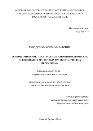 Катаклизмические переменные (КП) – это взаимодействующие тесные двойные системы (ТДС) с короткими орбитальными периодами, состоящие из белого карлика (первичный компонент) и красного карлика позднего спектрального класса K-М (вторичный компонент). В таких системах, как правило, вторичный компонент заполняет свою полость Роша и теряет массу, перенос которой, осуществляется через внутреннюю точку Лагранжа L1, формируя при этом аккреционную структуру вблизи поверхности белого карлика. Если белый карлик обладает сильным магнитным полем B 106 Гс, этот тип объектов называется магнитными катаклизмическими переменными (МКП). Для дальнейшего разделении МКП на подтипы нужно ввести определение альвеновского радиуса. Альвенов-ский радиус ra – это расстояние от белого карлика на котором давление магнитного поля сравнивается с давлением падающего вещества. На расстоянии r ra аккрецирующее вещество контролируется уже не силами тяготения, а магнитным полем, двигаясь по магнитным силовым линиям. В случае, когда магнитное поле белого карлика недостаточно сильное B = 106 - 107 Гс, ra a, где a-большая полуось системы, вещество, покидающее красный карлик сначала движется по кеплеровской обрите, образуя промежуточный аккреционный диск и только потом захватывается магнитным полем. Такие системы называются промежуточными полярами. В случае, когда B 107 Гс и ra a, вещество покидая точку L1 захватывается магнитным полем и вещество двигается по магнитным силовым линиям на один или оба магнитных полюса белого карлика. Струя аккрецирующего вещества выпадает на ограниченную поверхность белого карлика, формируя горячее пятно и аккреционную колонну. Такие системы называются полярами. Сам термин поляр был введен в 1977 г. чешским астрономом Кржеминским [17]. Отметим, что в данной работе исследуются только поляры, поэтому далее будет идти речь только об этом типе систем.