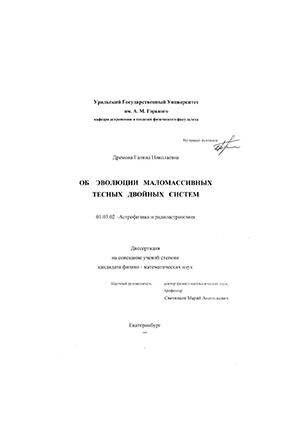 Дремова Галина Николаевна. Об эволюции маломассивных тесных двойных систем : диссертация ... кандидата физико-математических наук : 01.03.02.- Екатеринбург, 2002.- 150 с.: ил. РГБ ОД, 61 03-1/387-3