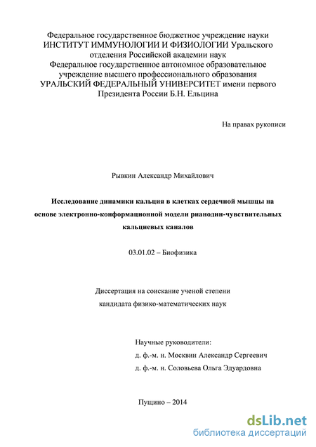 В связи с тем, что высвобождение Са2+ из СР осуществляется через группы RyR-каналов, исследование их динамических свойств является важной задачей в изучении процессов электромеханического сопряжения.