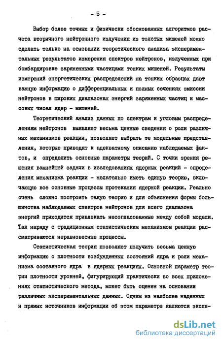 высокоэнергетических частиц по сравнению с предсказаниями статистической теории. Наличие высокоэнергетической части в экспериментальных спектрах, которая не описывается статистическими соотношениями, и асимметрия угловых распределений частиц, вылетающих с высокими энергиями, свидетельствуют о присутствии наряду со статистическим совершенно иного механизма реакции, который принято в литературе называть нестатистическим или неравновесным. Ясно, что при анализе энергетических распределений, необходимо знать вклад нестатистического механизма реакции.