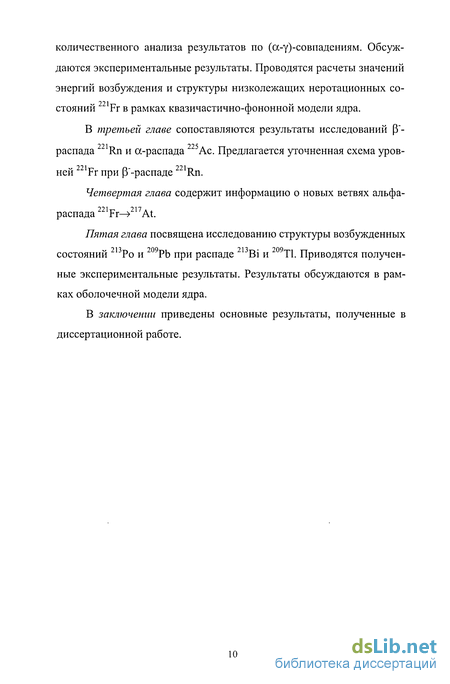 Цель работы состояла в получении новых и уточнении имеющихся экспериментальных данных о структуре атомных ядер в цепочке распадов 225Ас; в анализе структуры возбужденных состояний 221Fr, 213Рои209РЬ.