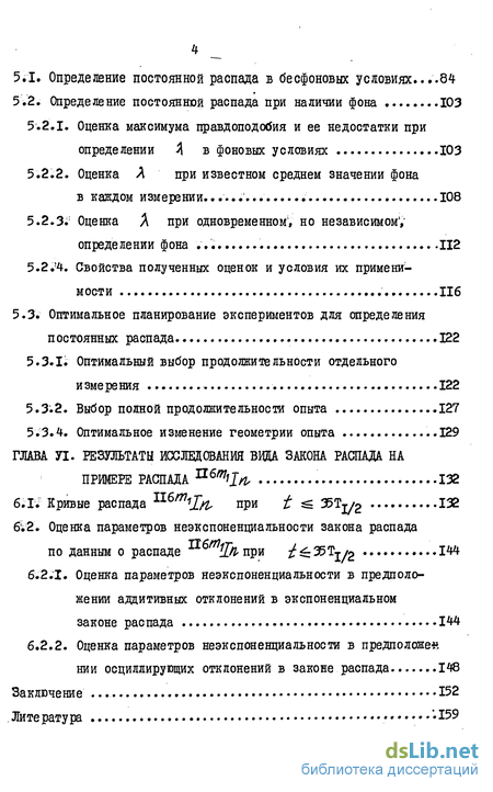 Четвертая и пятая главы: диссертации содержат описание методики анализа экспериментальных данных, получаемых в опытах по исследованию вида закона распада.