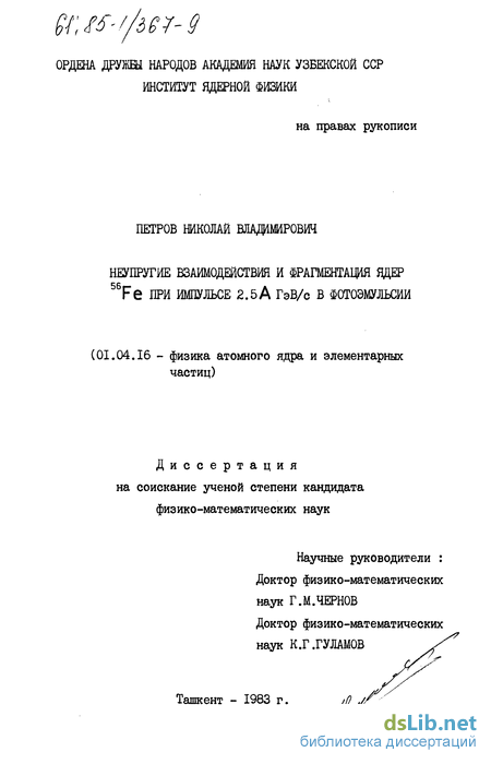 Работа выполнялась в Лаборатории релятивистской ядерной физики Института ядерной физики Академии Наук УзССР в течение 1979-1983 гг.