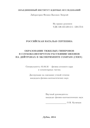 Личный вклад автора Личный вклад автора в получение результатов, выносимых на защиту, является определяющим. Данная работа была предложена и выполнена Дубненской группой COMPASS. Результаты, вошедшие в диссертацию, по измерению выходов тяжелых гиперонов и антигиперонов были получены непосредственно автором, а оптимизация параметров генератора LEPTO проведена при его активном участии. Автор принимал активное участие в обсуждении результатов исследования и подготовке публикаций по теме диссертации. Автором неоднократно докладывались результаты работы на рабочих совещаниях коллаборации COMPASS, научных семинарах и международных конференциях.