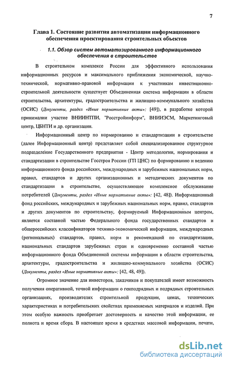 ГЛАВА 1. СОСТОЯНИЕ РАЗВИТИЯ АВТОМАТИЗАЦИИ ИНФОРМАЦИОННОГО ОБЕСПЕЧЕНИЯ ПРОЕКТИРОВАНИЯ СТРОИТЕЛЬНЫХ ОБЪЕКТОВ 7