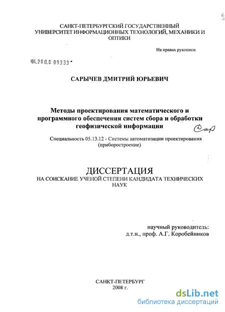 Целью данной работы является разработка методов автоматизированного проектирования математического и программного обеспечения систем сбора и обработки геофизической информации.
