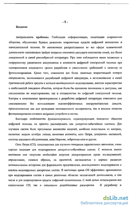 Сети Петри (СП), предложенные для изучения поведения параллельных автоматов, очень хорошо подходят для моделирования дискретно-событийных систем. С момента своего появления они получили необычайно широкое распространение среди исследователей, определенное, главным образом, их простотой, наглядностью и хорошо развитым математическим аппаратом для формального представления, имитационного моделирования и анализа моделируемых дискретных систем, В настоящее время СП эффективно применяются при моделировании систем в самых различных областях человеческой деятельности, в том числе и для моделирования средств цифровой схемотехники. С этой целью используются как классические СП, так и специально разработанные расширения. В разработку и совершенствование теории СП и вопросам их практического применения для моделирования средств цифровой и вычислительной техники большой вклад внесли работы таких ученых как Hariel D., Cortadella, Esparza, McMillan, Milner, Ангер С, Варшавский В.И., Яковлев А.В., Кишиневский М.А., Закревский АД. и др. В результате было предложено множество новых средств, позволивших создать более зффеїспівньїе и совершенные модели. Например, такие как ингибиторные, оценочные, схемные, операционные СП, графы операций и многие другие.