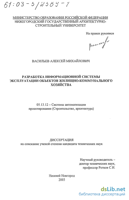 Васильев, A.M. Информационные системы эксплуатации ЖКХ / A.M. Васильев, СИ. Ротков // Новейшие информац. технологии - инструмент повышения эффективности упр.: Вторая межрегион, конф. - 2002. - С. 142-145.