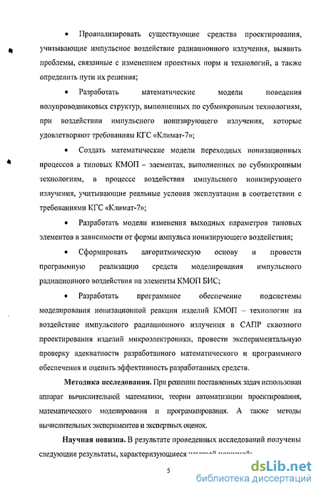 Цель и задачи работы заключаются в разработке моделей, алгоритмов и методического обеспечения для проектирования комплементарных микросхем, стойких к импульсным видам воздействия, и экспериментальной проверки их адекватности и эффективности.