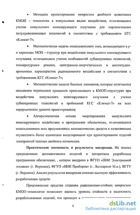 Математическая модель ионизационного тока, возникающего вр-п переходах МОП - структур при воздействии импульсного ионизирующего излучения, отличающаяся учетом особенностей субмикронных технологий, температурного режима, спектрально-энергетических и амплитудно-временных характеристик радиационного воздействия в соответствии с требованиями КГС «Климат-7»;