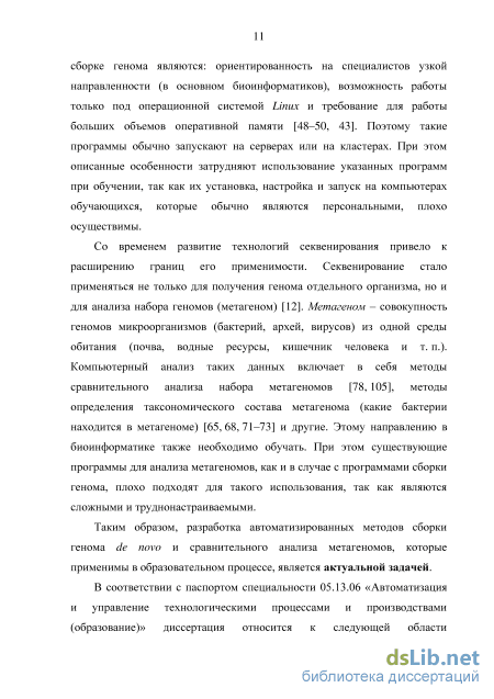 Таким образом, разработка автоматизированных методов сборки генома de novo и сравнительного анализа метагеномов, которые применимы в образовательном процессе, является актуальной задачей.