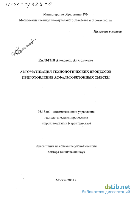 Именно поэтому настоящая работа нацелена на создание стройной методологии проектирования автоматических систем управления процессами непрерывного приготовления асфальтобетонных смесей.