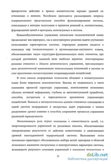 В этом смысле непрерывные технологии обладают в концептуальном плане более широкими возможностями. Высока их подвижность в части изменения принятой структуры управления, использования возможных объемов активной информации, глубины ее интеллектуальной проработки, способов, алгоритмов и периодичности приложения управляющих воздействий. Важным в методологическом аспекте становится совмещение в одной системе непрерывных и дискретных задач управления с четким разделением уровня влияния и способов сопряжения процессов управления различной периодичности.
