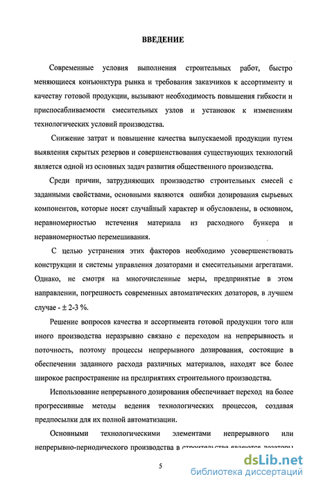 Решение вопросов качества и ассортимента готовой продукции того или иного производства неразрывно связано с переходом на непрерывность и поточность, поэтому процессы непрерывного дозирования, состоящие в обеспечении заданного расхода различных материалов, находят все более широкое распространение на предприятиях строительного производства.